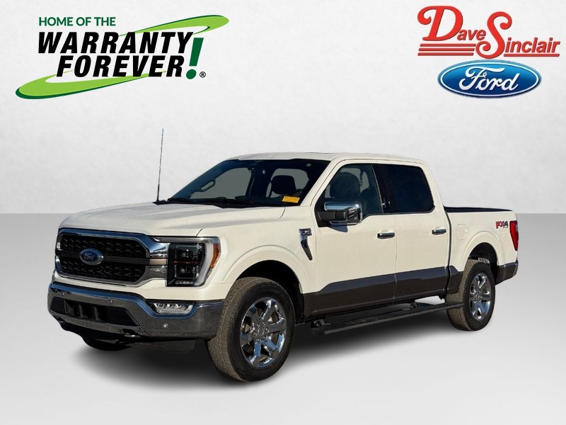 Try out our One Owner, Accident-Free, Low Mile 2023 Ford F-150 King Ranch SuperCrew 4X4 and take capability and comfort to the next level in Star White Metallic Tri-Coat with the Bed Utility Pack, Chrome Appearance Pack, Trailer Tow Pack, and FX4 Off-Road Pack! Powered by a Twin-TurboCharged 3.5 Liter PowerBoost V6 and an Electric Motor delivering a combined 430hp to a 10 Speed Automatic transmission. This Four Wheel Drive truck also has an onboard generator, and it returns nearly 23mpg on the highway with a big-time presence. A mighty machine, our F-150 looks impressive with a Two-tone exterior, Ford’s LED Dynamic Bending headlights, fog lamps, angular step bars, a twin-panel sunroof, and bold 20-inch alloy wheels with exclusive accents.