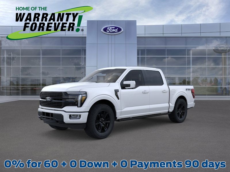 Refined and powerful, our New 2025 Ford F-150 Platinum SuperCrew 4X4 with the 702A High Pack and FX4 Off-Road Pack offers excellence in Star White Metallic Tri-Coat! Motivated by a Twin-TurboCharged 3.5 Liter EcoBoost® V6 supplying 400hp to a 10 Speed Automatic transmission. With that setup, you’ve got plenty of capability to spare, and our Four Wheel Drive truck achieves nearly 24mpg on the highway. This Ford F-150 looks fantastic with its 20-inch gloss-black wheels, LED lighting, fog lamps, power running boards, a Pro Power generator, a Pro Access power tailgate, and our High Pack for a twin-panel sunroof.
