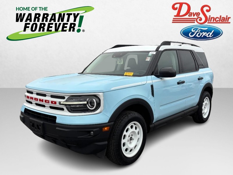 Ready for adventure, our One Owner, Accident-Free, Low Mile 2024 Ford Bronco Sport Heritage 4X4 with the Convenience Pack helps inspire you to take the scenic route in Robin’s Egg Blue! Powered by a TurboCharged 1.5 Liter EcoBoost® 3 Cylinder offering 181hp to an 8 Speed Automatic transmission so you’re at home on the trail or in the town. This Four Wheel Drive SUV also showcases a multimode terrain system for impressive off-road agility, and it scores nearly 28mpg on the highway. Our bold Bronco Sport helps turn heads with old-school details like an Oxford White roof, Oxford White graphics, and a matching grille with red lettering, all complemented by roof rails, 17-inch Oxford White alloy wheels, LED headlights/fog lamps, liftgate flood lamps, and a handy flip-up rear glass.